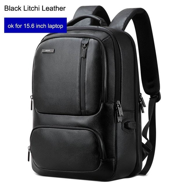 BOPAI Top Genuine Leather Backpack Men 15.6 Inch Laptop Backpack